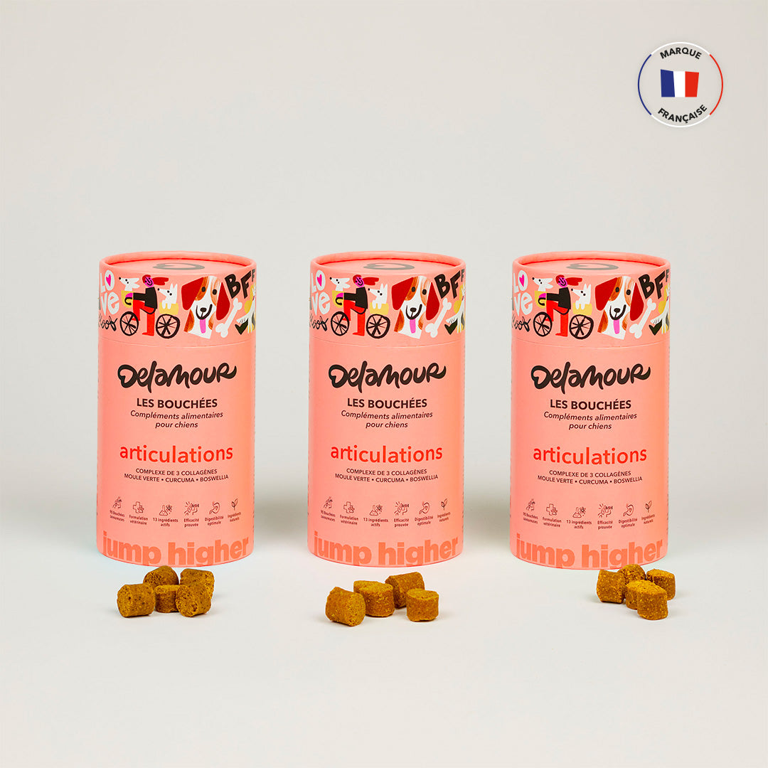 Les Bouchées - Articulations contribuent à renforcer les cartilages fragilisés, soulager les inflammations et préserver la mobilité de votre chien.