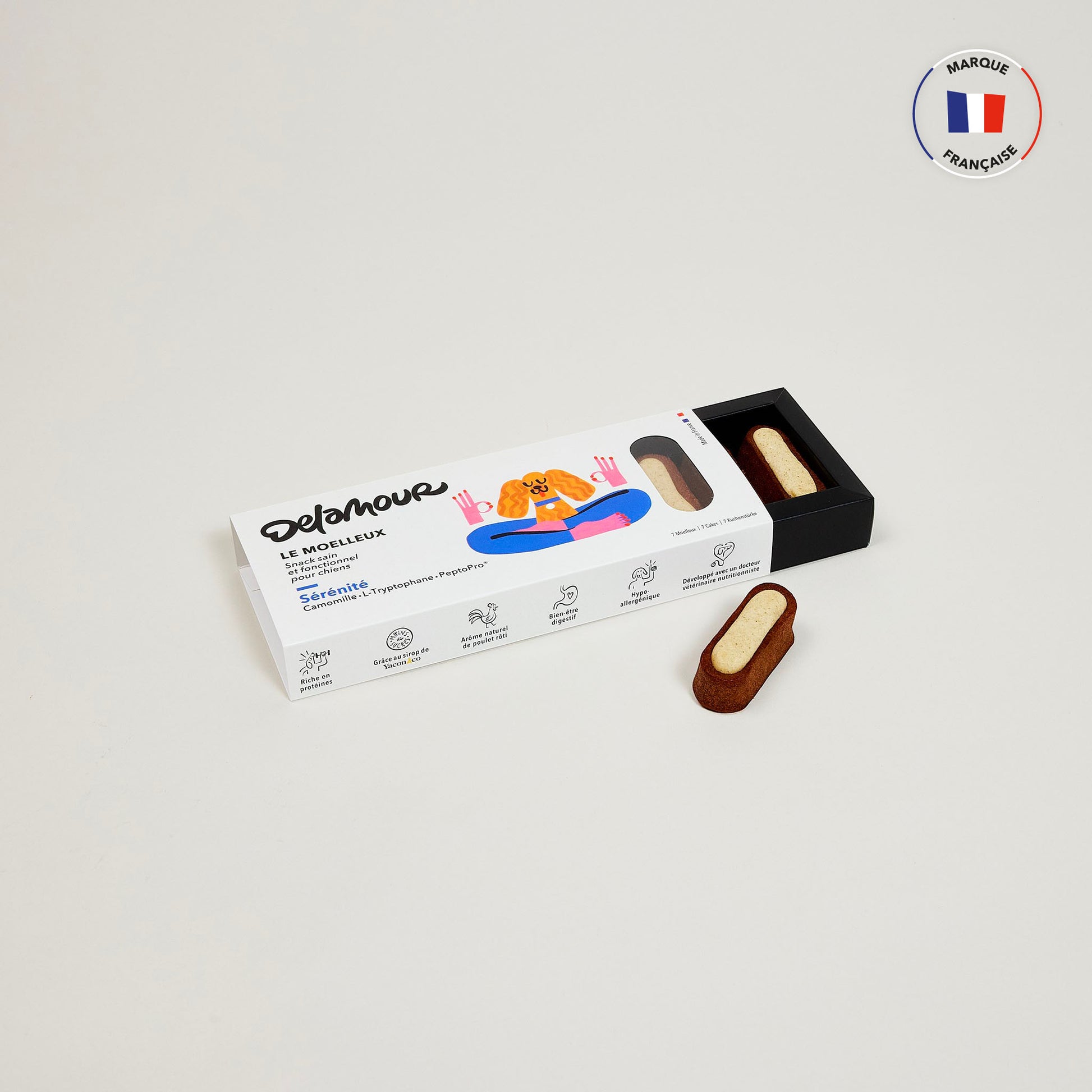 Conçu avec un Docteur vétérinaire spécialisé en nutrition animale, Le Moelleux est un snack pour chien parfaitement équilibré et adapté aux besoins spécifiques de chaque chien. Grâce à son délicieux arôme naturel de poulet rôti, notre pâtisserie artisanale allie plaisir et bien-être.