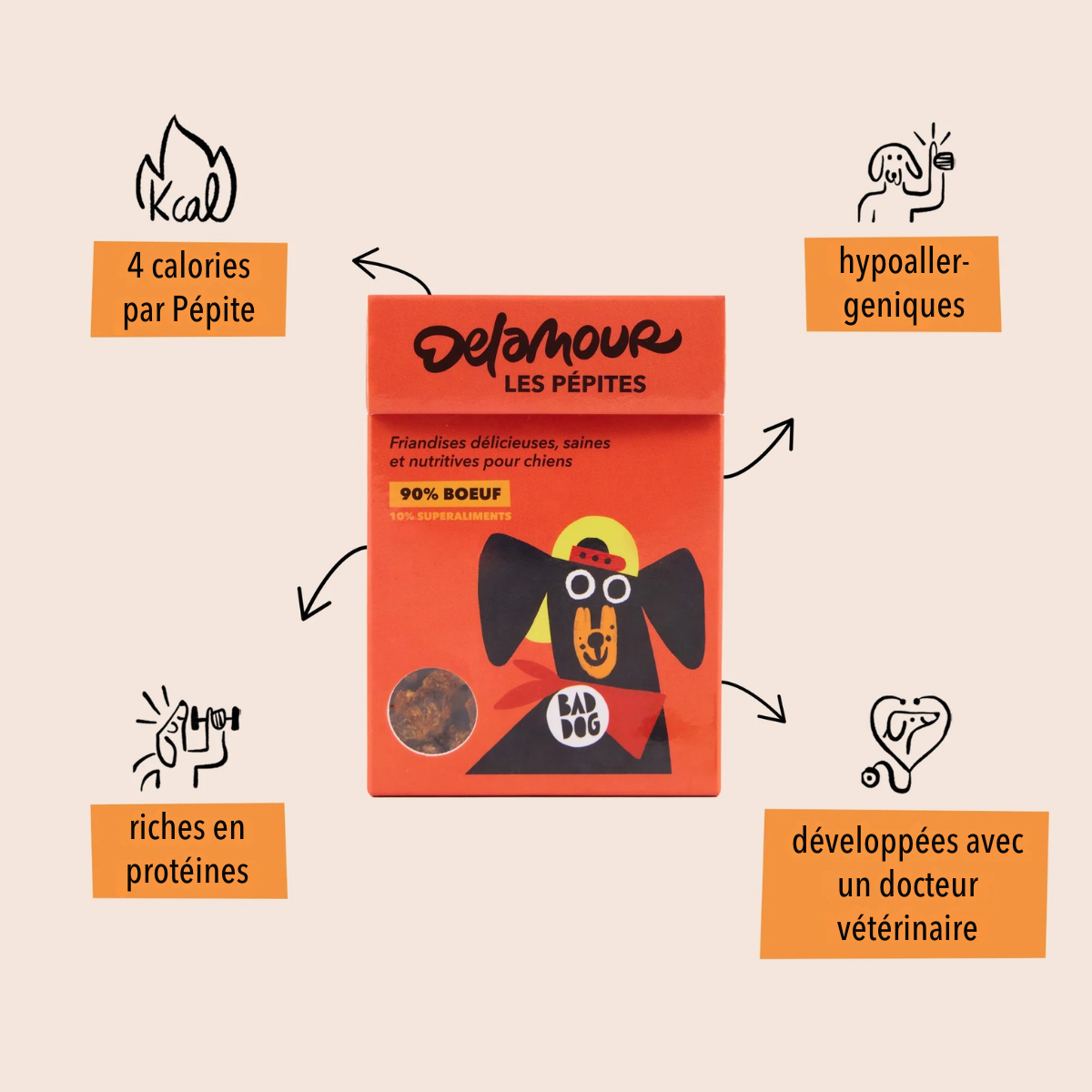 Avec seulement 4 calories par friandises, les Pépites Delamour permettent aux dog parents de récompenser leur chien plusieurs fois par jour, sans compromettre son équilibre alimentaire ni risquer de surpoids. Mais tout est bien entendu une question de modération ;)
