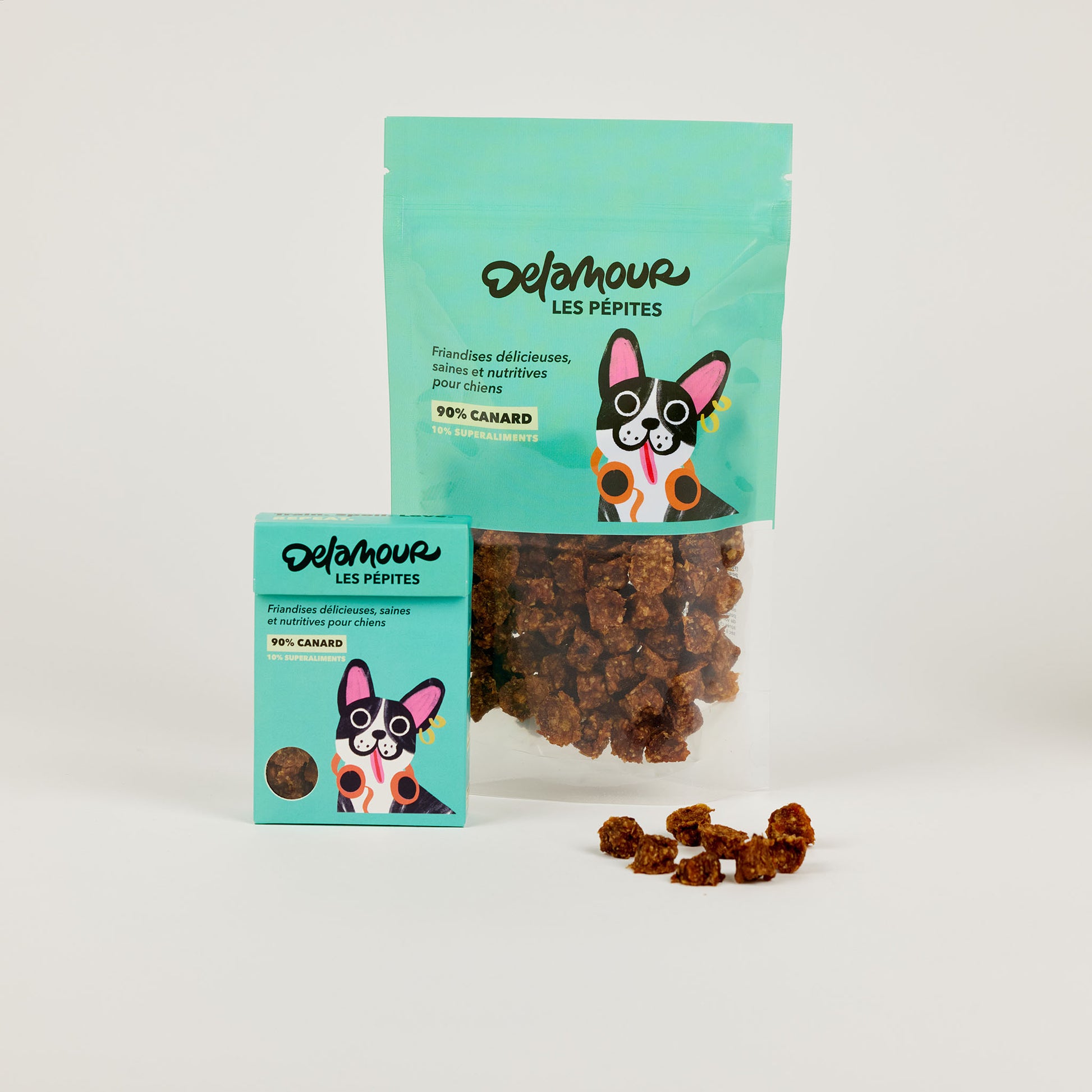 Avec seulement 4 calories par friandises, les Pépites Delamour permettent aux dog parents de récompenser leur chien plusieurs fois par jour, sans compromettre son équilibre alimentaire ni risquer de surpoids. Mais tout est bien entendu une question de modération ;)
